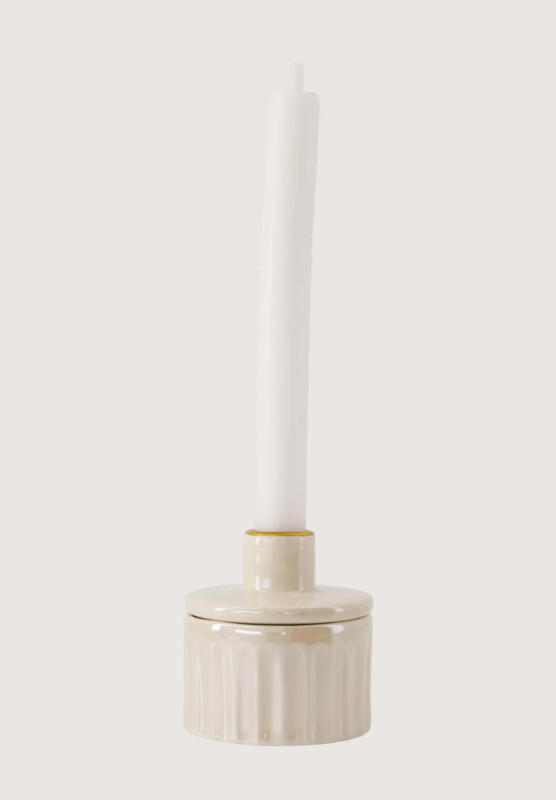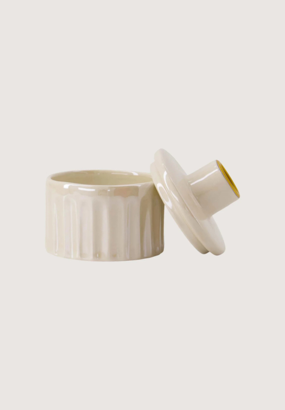Kandelaar keramiek parelmoer met deksel